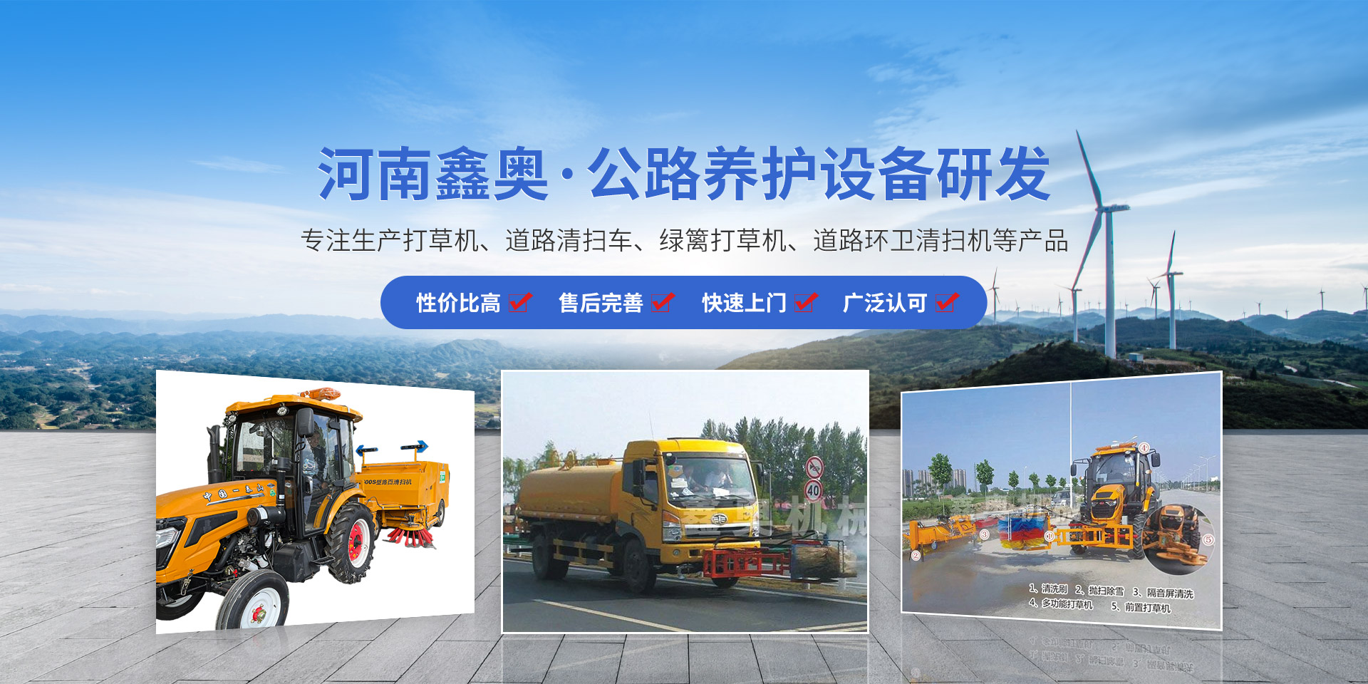 河南鑫奧機(jī)械制造有限公司位于“森林城市”京廣鐵路大動脈貫穿而過的新鄉(xiāng)。是一家生產(chǎn)打草機(jī)、道路清掃車、綠籬打草機(jī)、道路環(huán)衛(wèi)清掃機(jī)等產(chǎn)品的公司,集研發(fā)、制造、營銷及技術(shù)服務(wù)為一體的新技術(shù)企業(yè)。自2000年開始從事公路養(yǎng)護(hù)設(shè)備的研制開發(fā)與生產(chǎn)。于2007年通過資產(chǎn)組合成立了河南鑫奧機(jī)械制造有限公司。  我公司近年來堅持“鑫奧機(jī)械,源于公路”的理念,針對公路建設(shè)養(yǎng)護(hù)所需,我們的科技團(tuán)隊先后研制了道路環(huán)......